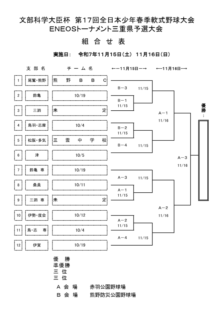県大会出場は、3チームなので、「 3勝 」が必要。※準決勝で負けても、翌日の3位決定戦で勝利の道もある。