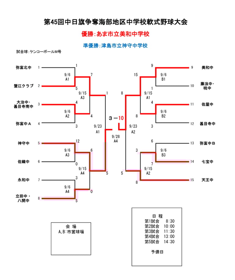 ⚾ 愛知県 🏆幸田南部中学校、🥈阿久比中学校