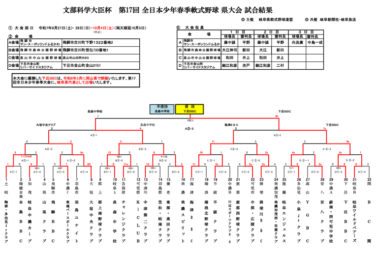 ⚾ 岐阜県 🏆長森中学校、🥈日新中学校