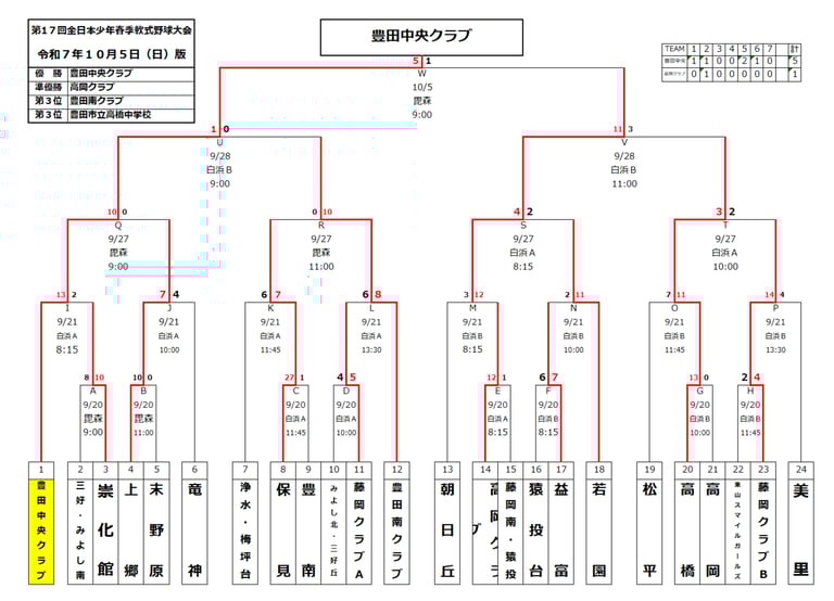 西尾張大会出場は、2チームなので、シード校2勝・ノーシード校3勝が必要。決勝戦に残れば確定ということです。